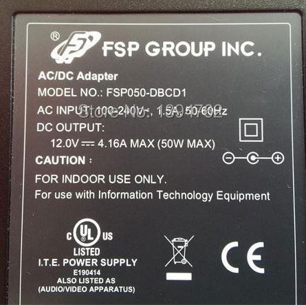 100V-240V 50Hz Výstup: 12V = 4160mA, označenie FSP050-DBCD1, sieťový kábel 0,9m súčasťou