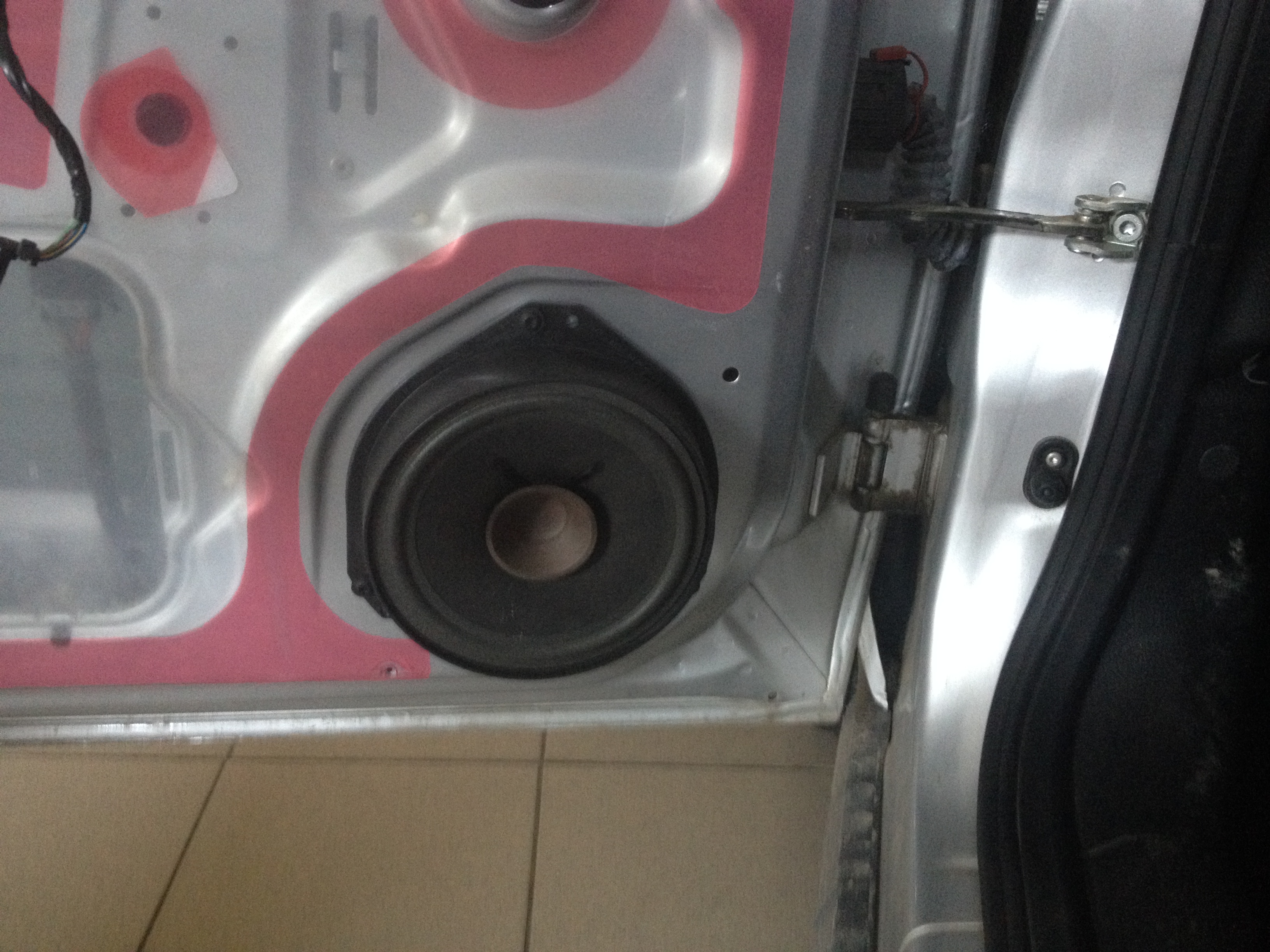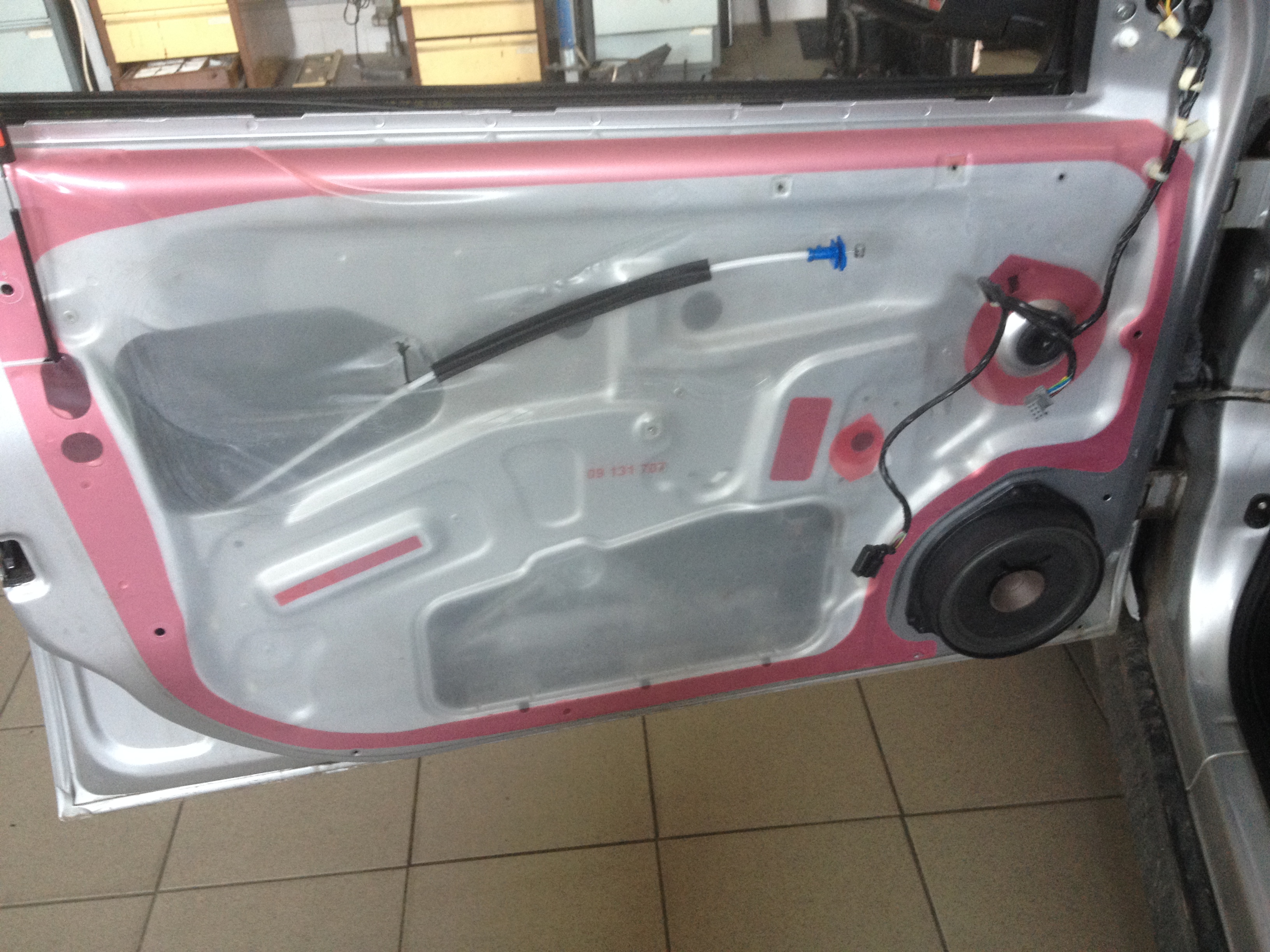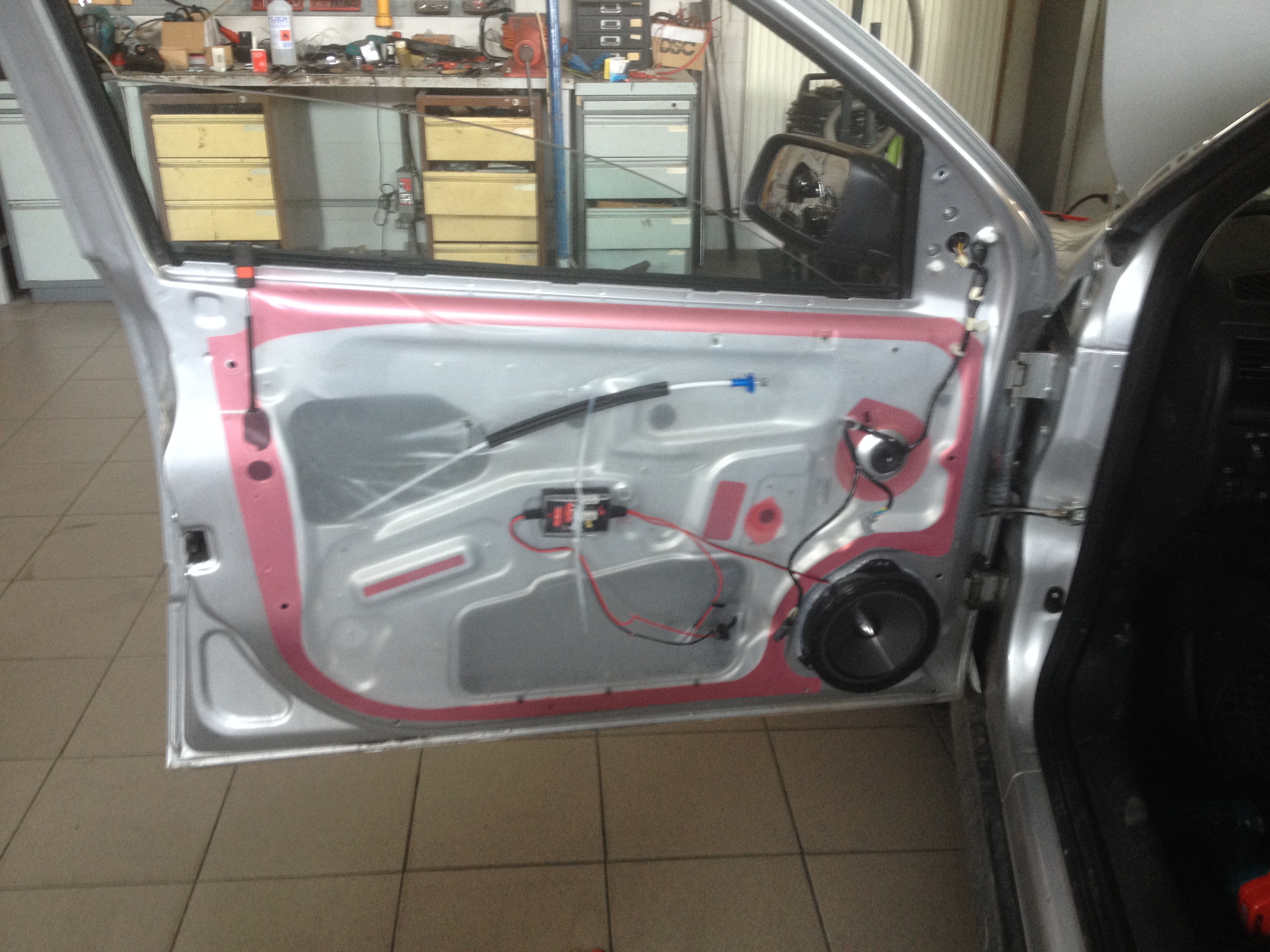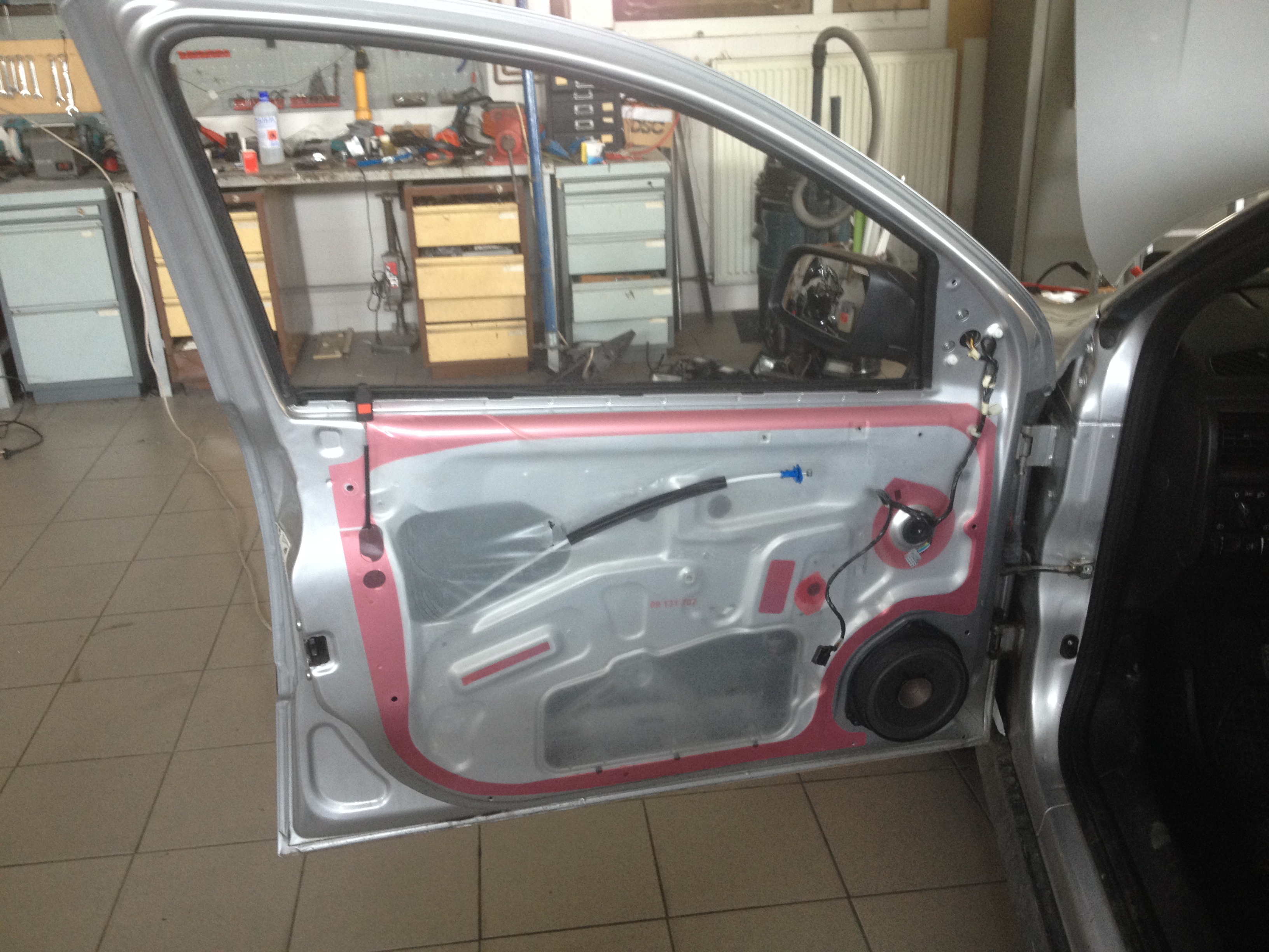 Tlmenie striekacím tmelom, výmena reproduktorov. Kompletné tlmenie striekacím tmelom, cielene je nanesené na celú plochu dutiny dverý, dotatorne ochraňuje voči korózii, keďže nie sú volné spoje. Výmena reproduktorov komponentných delených reproduktorov s výhybkou. Výsledne krajší zvuk, a pohodlnejšia jazda s tlmenými dvermi. Nižšší hluk = menšia únava.