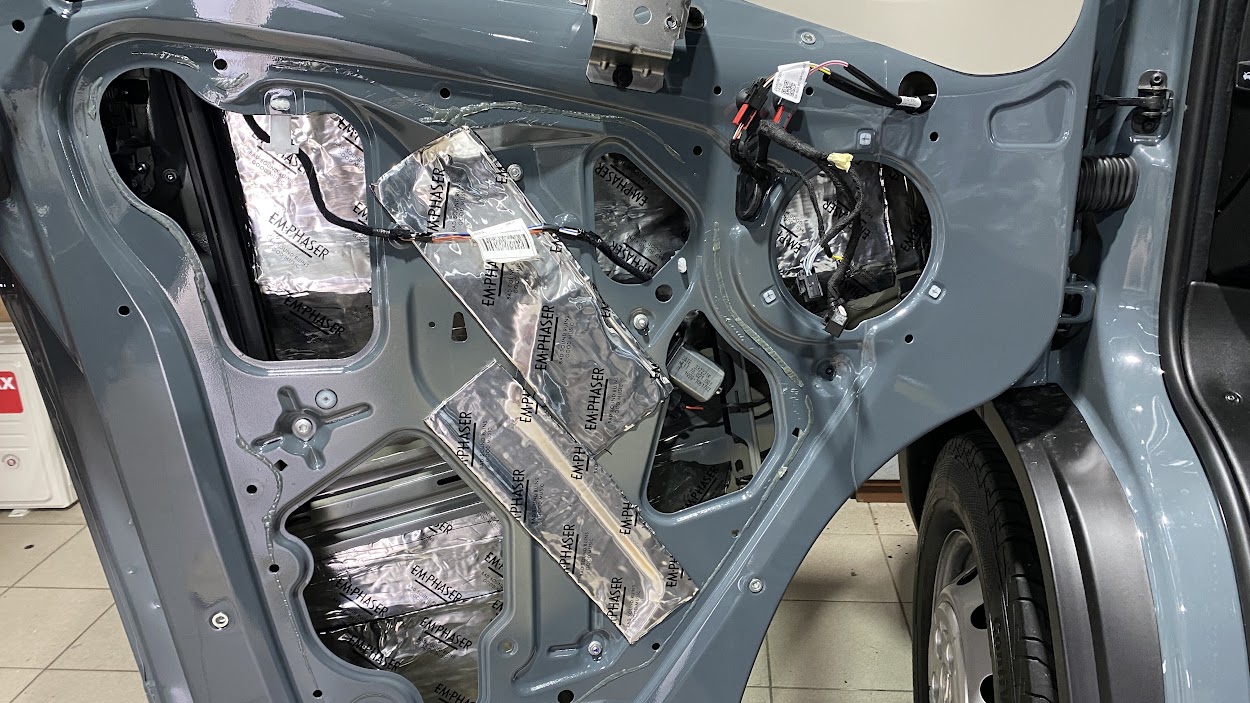Tlmenie vozidla s tlmiacim materiálom Emphaser Vozidlo bolo vytlmené v rozsahu nákladnej časti, dverý, kabiny.