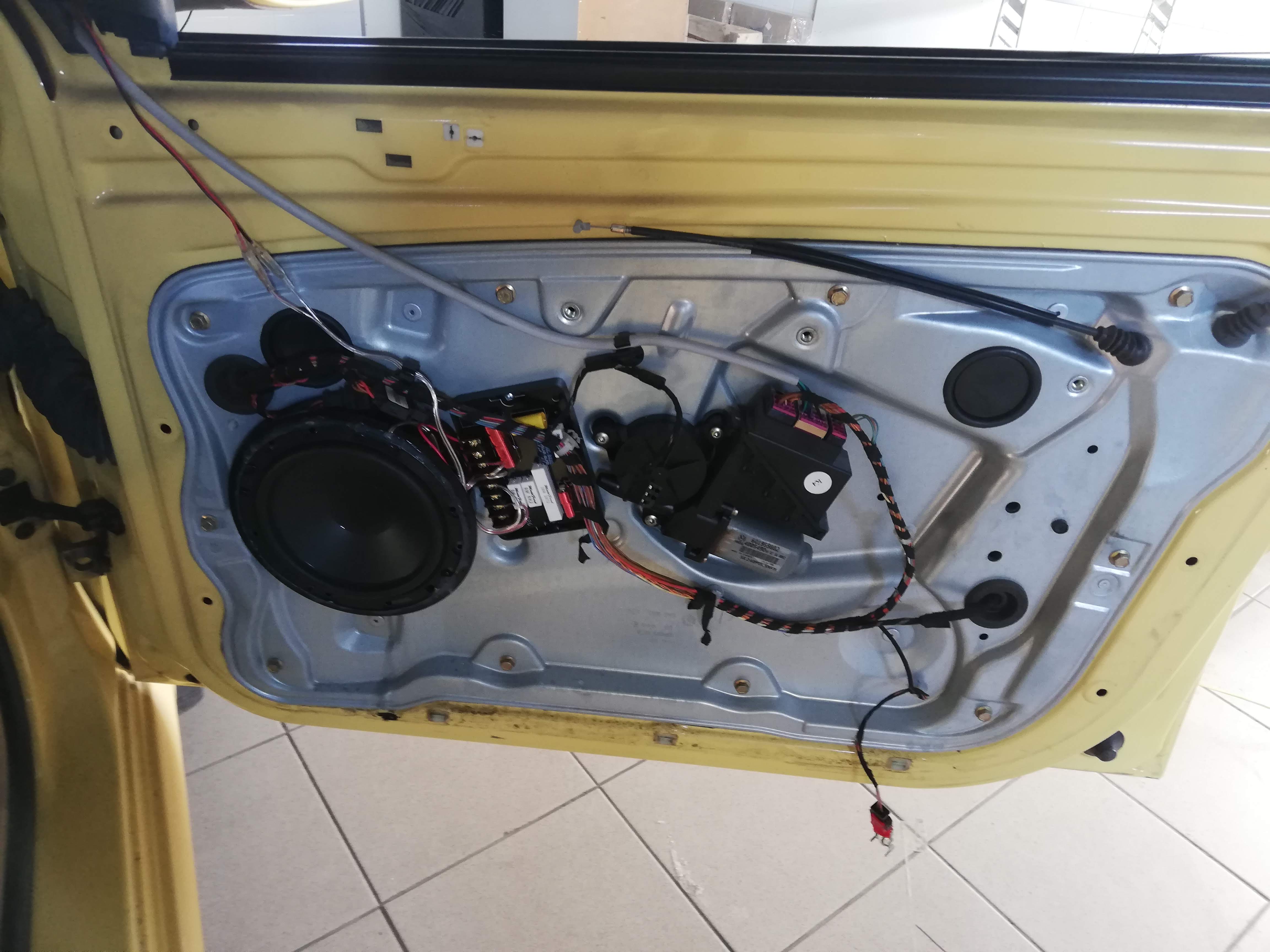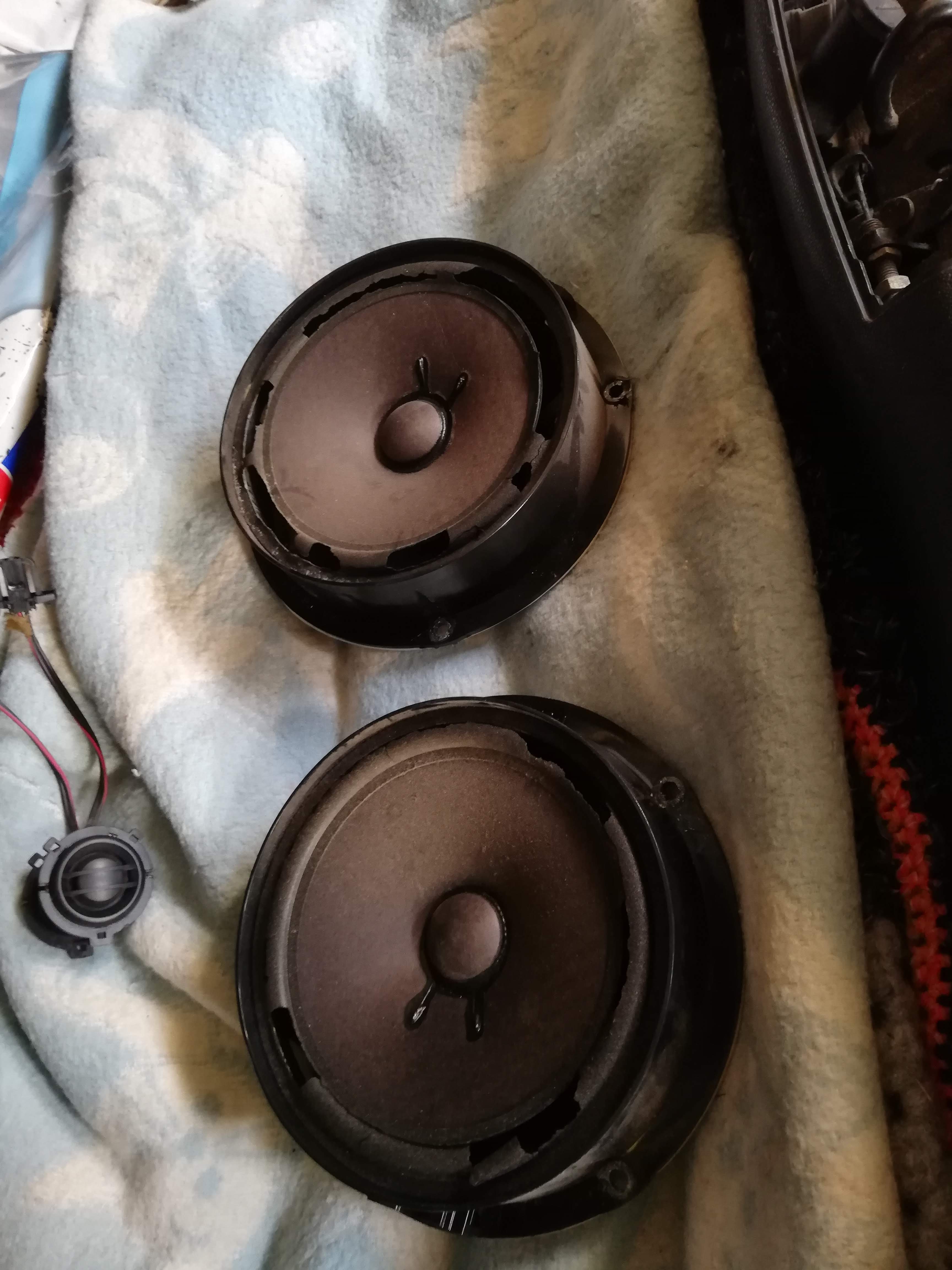 Montáž reproduktorov komponentných Montáž reproduktorov komponentných, čiže výškové a dva stredobasy. Posledný obrázok - pôvodné papierové nzkonákladové reproduktory.