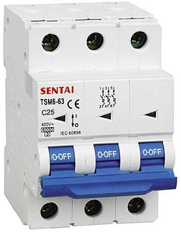 TSM6-63 400V / 25A / C istič 3fázový na DIN lištu    47083