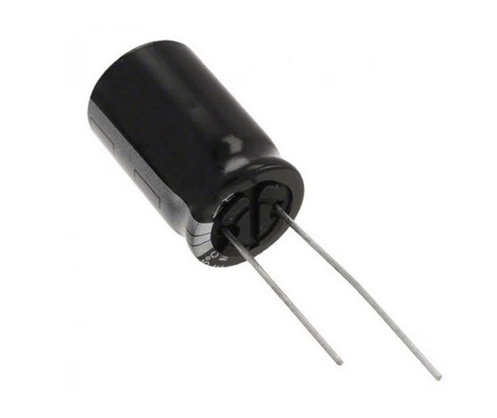 elektrolytický kondenzátor s kapacitou 3,3 µF a maximálnym pracovným napätím 50 V